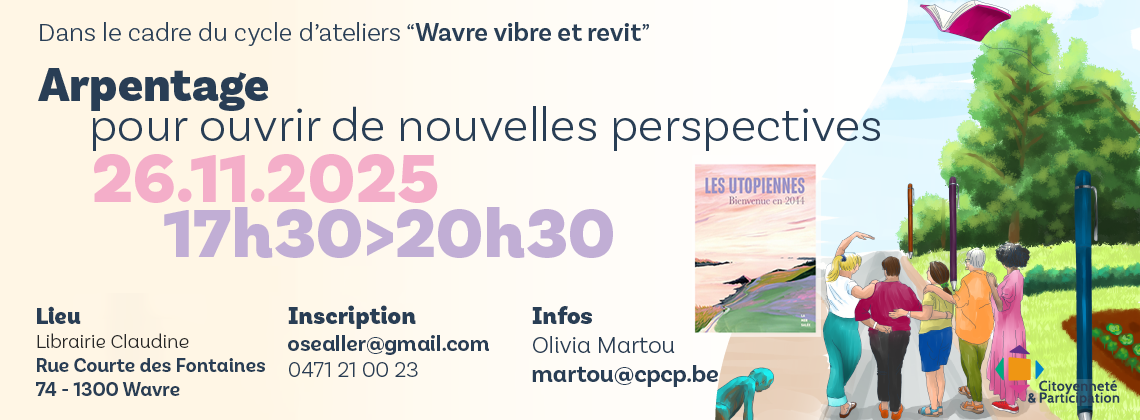 Citoyenneté & Participation (CPCP asbl) est une association sans but lucratif reconnue depuis 2010 par la Fédération Wallonie-Bruxelles en tant qu’institution d’éducation permanente. L’ASBL a pour mission d’alimenter, accompagner et consolider les processus, publics ou privés, qui favorisent l’émergence ou le renforcement d’une citoyenneté effective, informée, structurée, innovante, critique et résiliente. L’ASBL conçoit, met en œuvre ou appuie les dynamiques stimulant la participation de tous à la construction du projet commun.