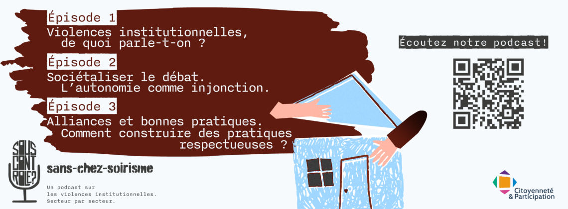 Un projet d'éducation permanente sur 5 ans Depuis 2022, notre ASBL mène un travail de recherche approfondi sur les violences institutionnelles, en consacrant chaque année un focus sur un secteur spécifique. Après avoir exploré différents domaines, 2025 marque un tournant avec un regard porté sur le secteur des personnes sans-abri et sans-chez-soi. Citoyenneté & Participation [lire la suite]